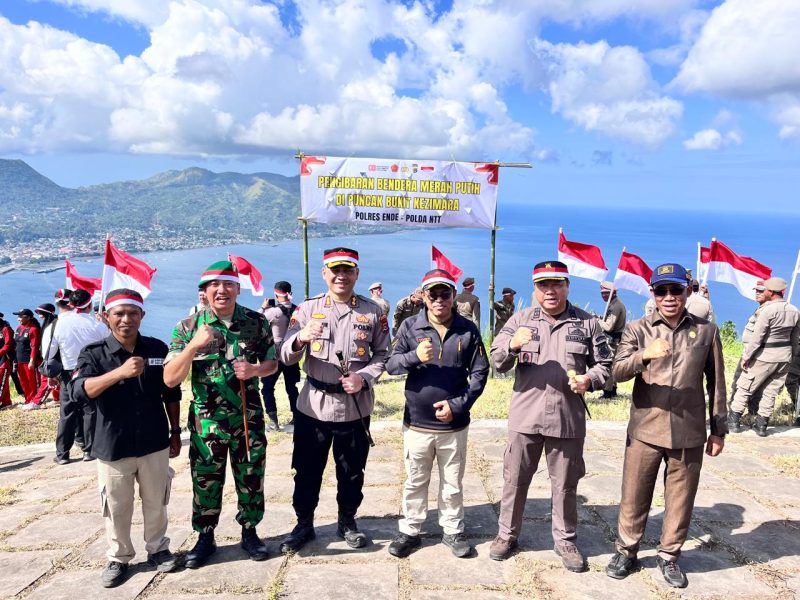 ENDE,narasintt.com– Menyongsong Hari Ulang Tahun ke-80 Kemerdekaan Republik Indonesia, Polres Ende Polda NTT menggelar kegiatan pengibaran bendera Merah Putih di puncak Bukit Kezimara, Sabtu (16/8/2025).